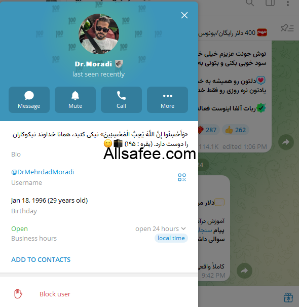ربات آلفا اینویست که توسط 💸 دکتر مرادی • درآمد دلاری تبلیغ میشود، بر اساس شواهد و الگوهای رفتاری، یک پروژه غیرشفاف، 100% کلاهبرداری است. اعتماد به وعدههای سود تضمینی و درآمد آسان دلاری، در اغلب موارد به از دست رفتن سرمایه منجر میشود.